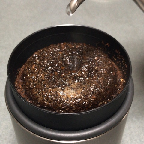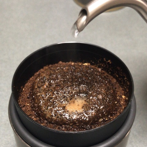 全体が膨らんで、狙いの1/3ほど落とせたら、極細注ぎに変えて注ぎます(^ ^)