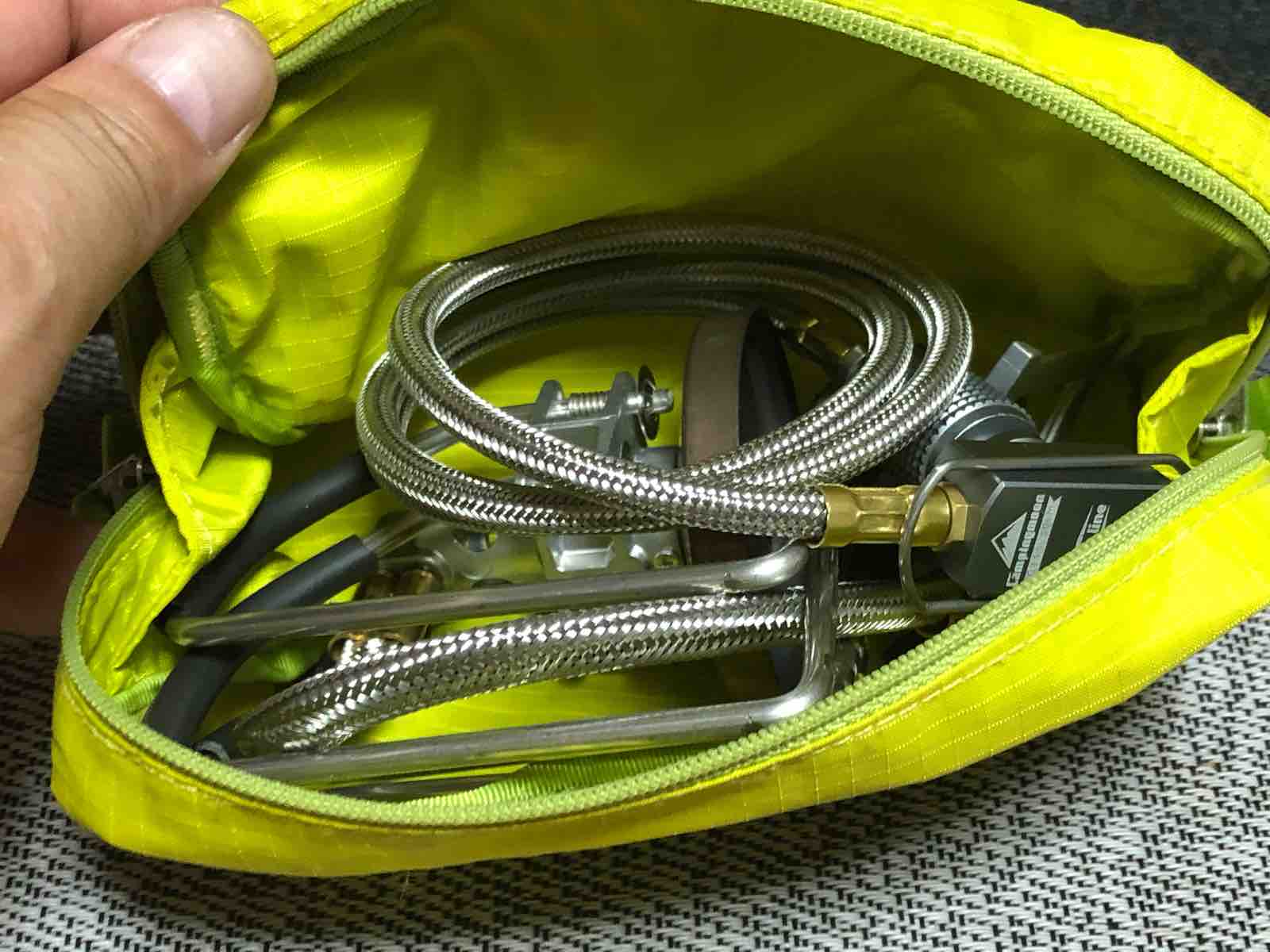 フュージョンと変換アダプター、延長ホースの全部が小ちゃいモンベルポーチに収まります!