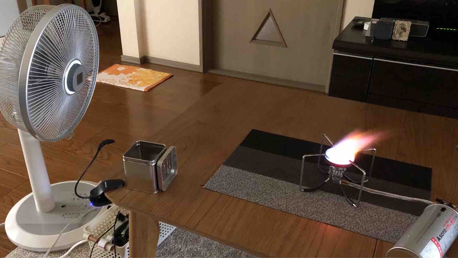 DCモーターの扇風機で風量最大にして確認