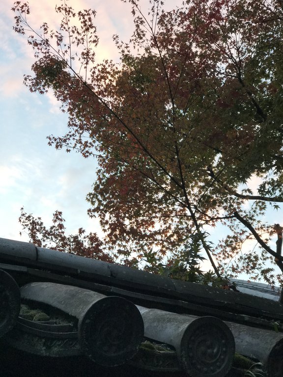 大徳寺周辺 紅葉から透かした朝焼け雲