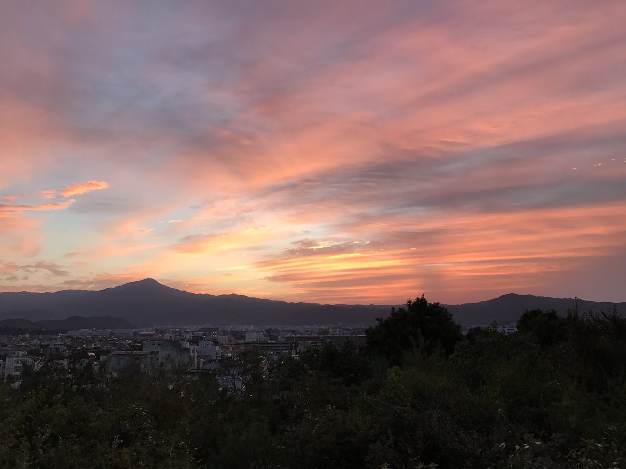 比叡山と大文字山の朝焼け! いい色です。